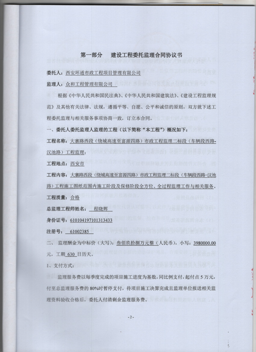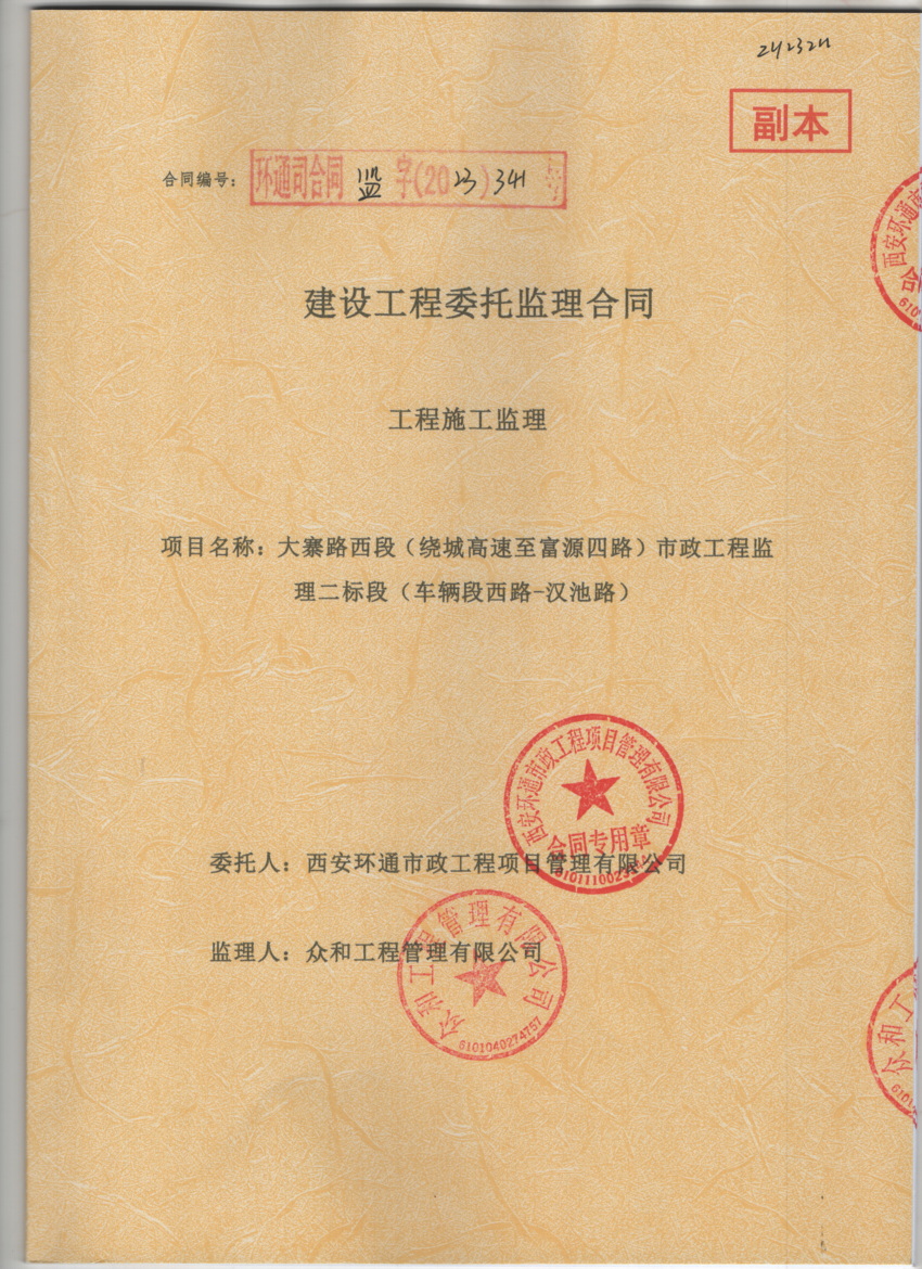 | 合同甲方 | 西安环通市政工程项目管理有限公司 | 合同乙方 | 众和工程管理有限公司 | ||||||||||||